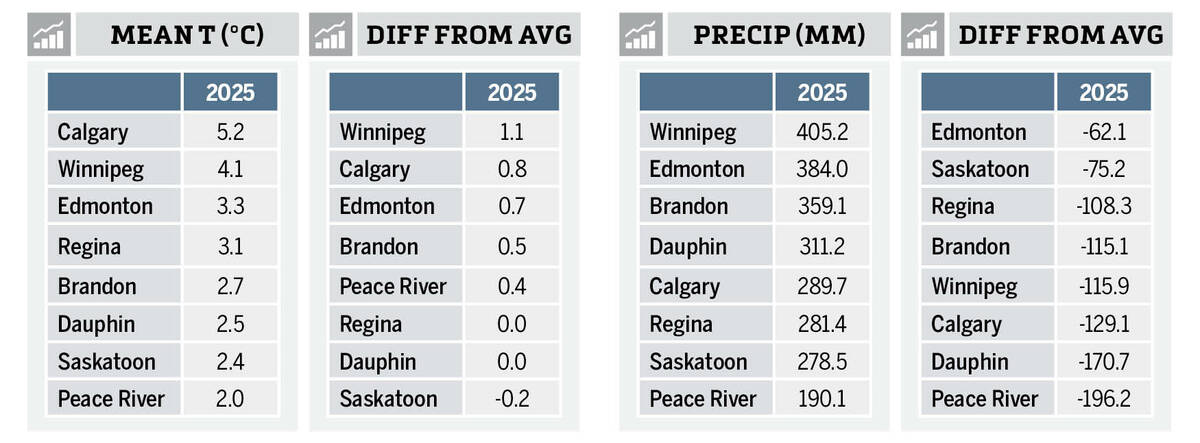 So overall, 2025 saw near-average temperatures across the Prairies, with well-below average precipitation.